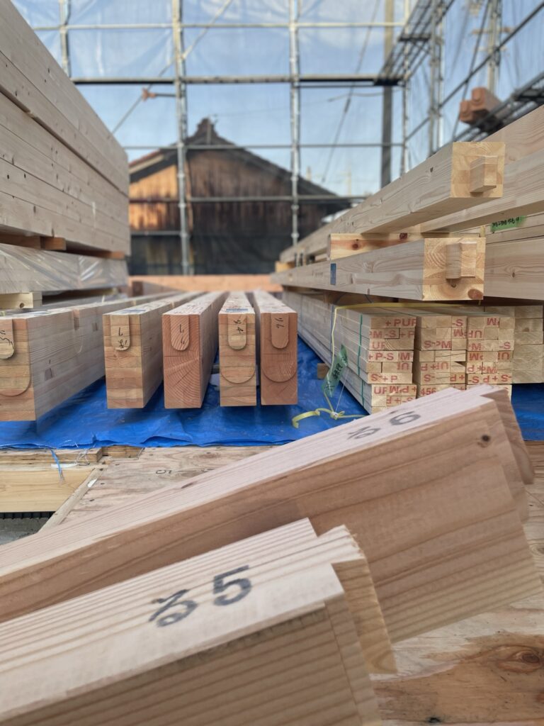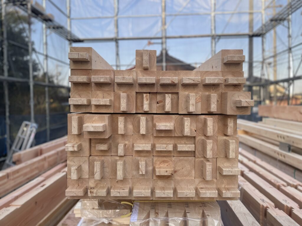 理由としては、無垢材の方が木のねじれや水分を含んで膨張しやすく、材料搬入後、いざ組み建てる!ときにほぞの部分がはねじれたり、膨張しててうまく噛み合わない・・・なんてことが起きやすいです。