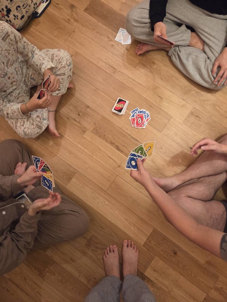 年末恒例のUNO大会では、全員素足で、決して広くないリビングで円になり