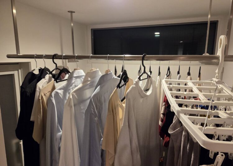 2~3日分まとめて洗濯を回すときは2畳のランドリーがパンパンになる!笑