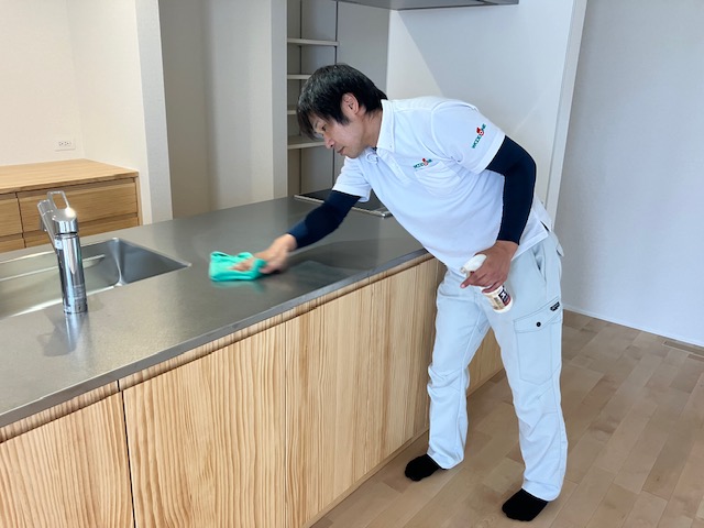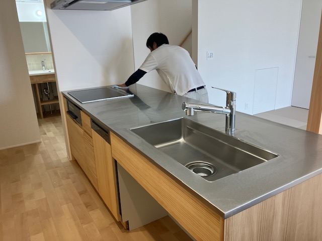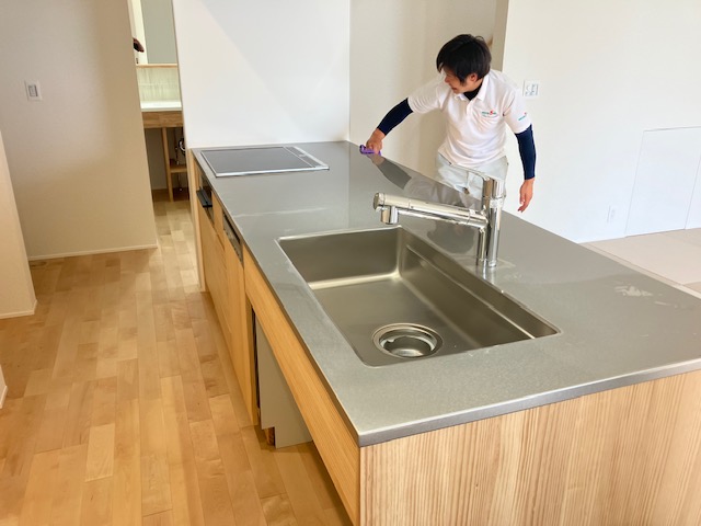 お引渡し当日にキッチンの天板の汚れが見つかり、メーカーさん対応でクリーニング。