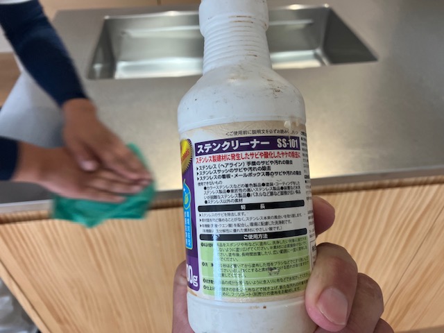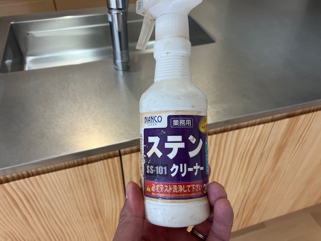 職人さんとの会話の中、ステンレスの油汚れにはパーツクリーナーもしくは中性洗剤でも可能。