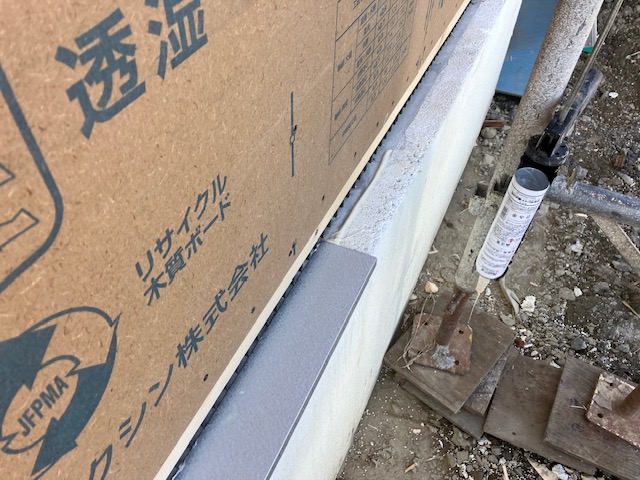 断熱材の天端に蟻返し板金の設置、コーキングには防蟻材入りボレイトシール