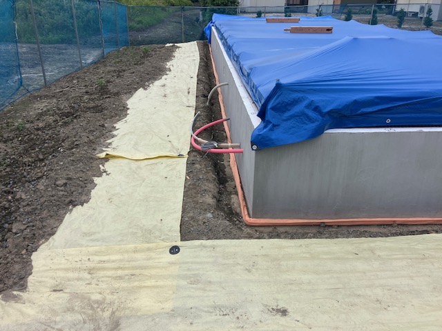 基礎の外に断熱材を施工する工法です。これにはシロアリ対策が必須事項。