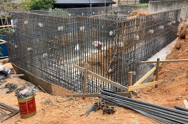 名古屋市新築工事現場では基礎+擁壁工事を行っています。