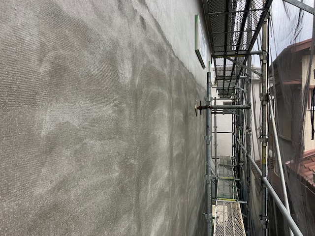 名古屋市新築工事現場では塗り壁のベース工事が完了。
