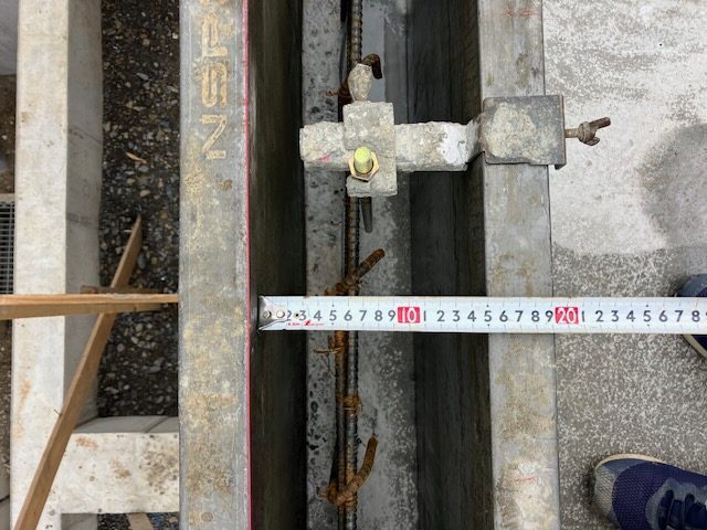 一部、アンカーボルトの設置位置がずれていましたので、その場で修正させていただきました。