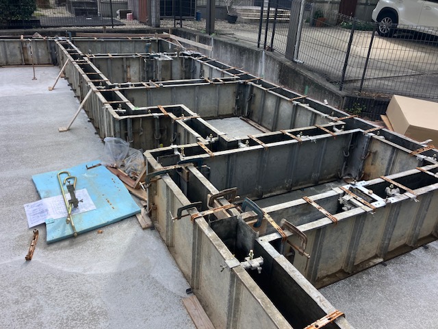 先週土曜日に型枠設置、アンカーボルト設置工事を行いました。