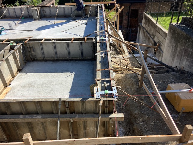 今日は朝一番から基礎立ち上がり部分のコンクリート打設を行いました。
