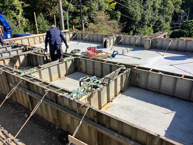 あとは基礎天端のレベリング工事とコンクリート養生。