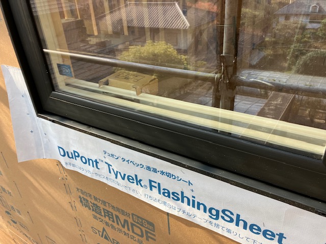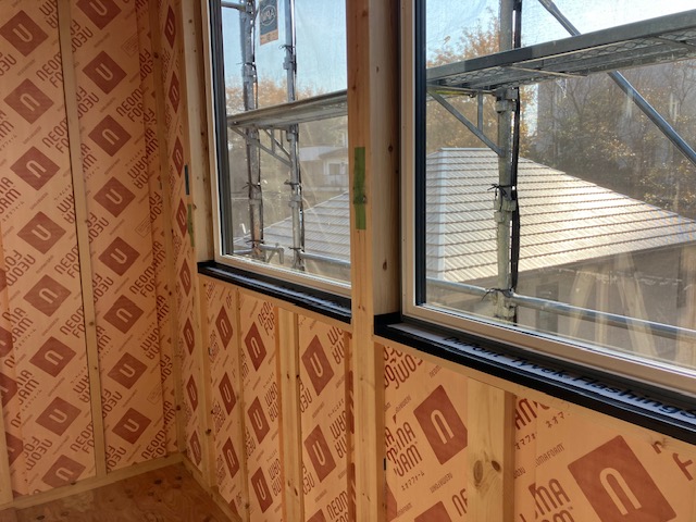 今日はサッシの取り付け工事もありましたので、施工状況も確認。
