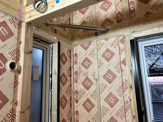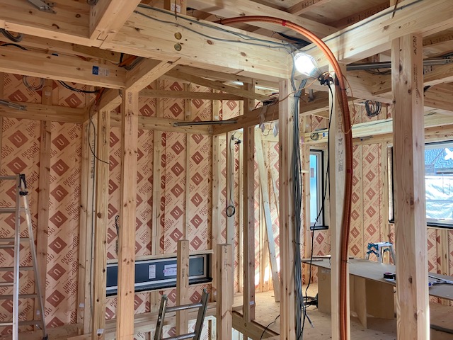 そして2階部分ですが、気密工事(コーキング工事、ウレタン補修)もほぼ完了。