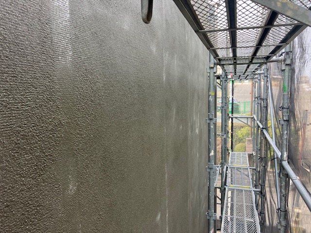 名古屋市新築工事現場では先日、モルタル塗り工事が完了しました。