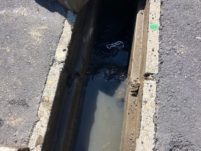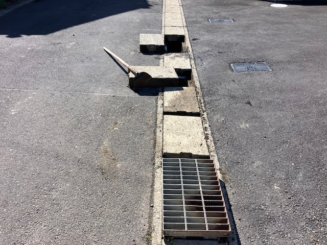側溝の清掃も兼ねながら確認。