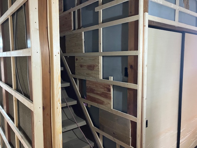 そして、階段部分には手すりが取り付けれるように下地補強。